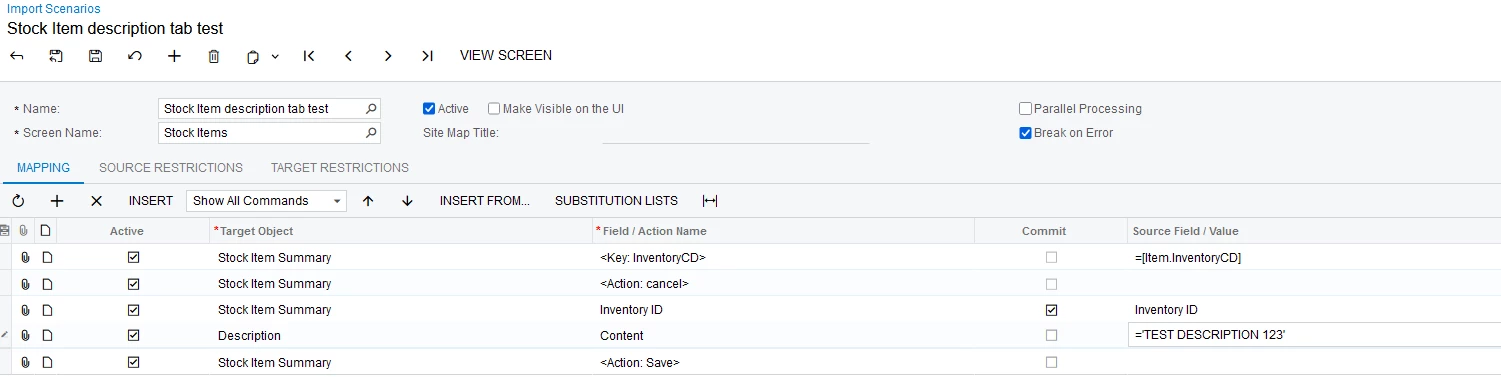 Hey does anyone have any import scenarios that are just simple to update stock item descriptions from an excel provider?