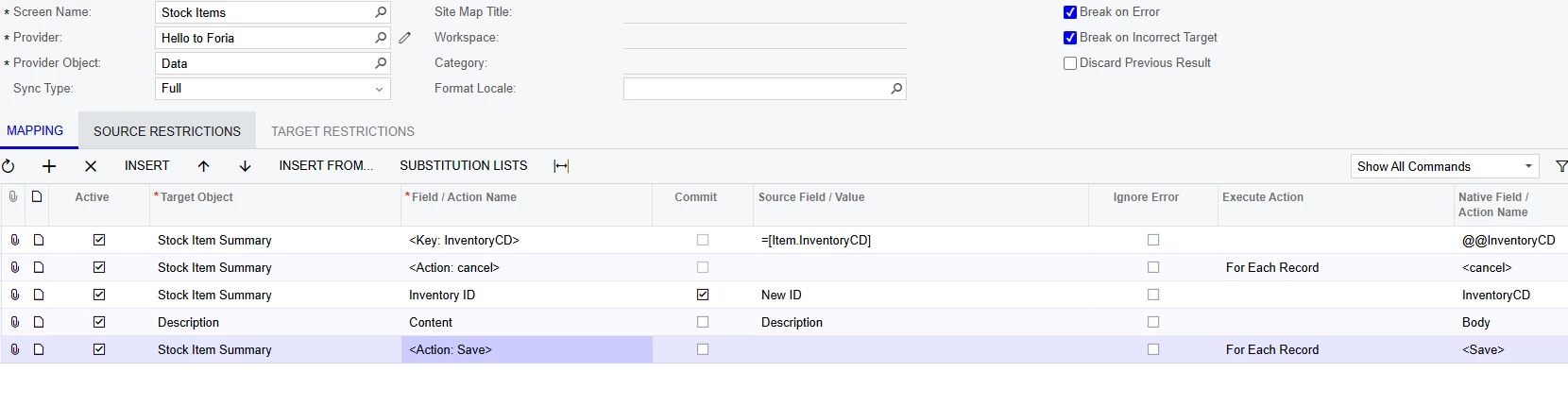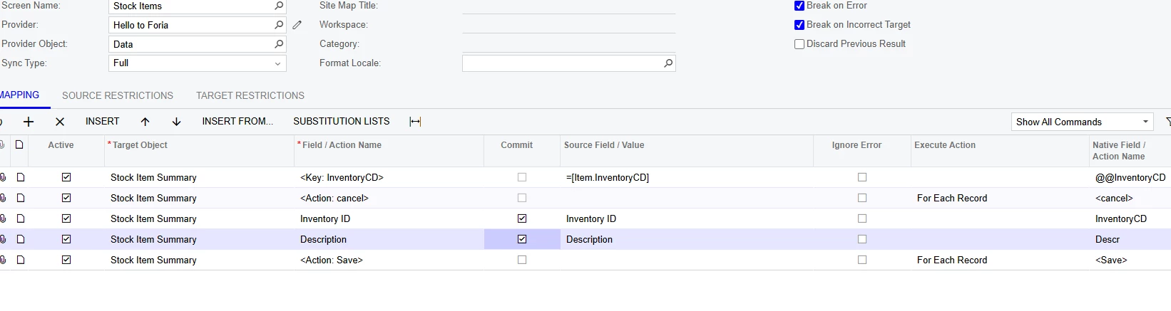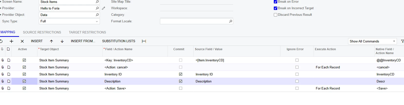 Error: The [InventoryCD] identifier is already used for another business account record (vendor, customer, employee, branch, company, or company group).