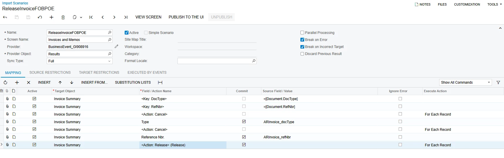 These are all fully built and simply need to have “release” clicked. When I open any of the error’ed out invoices, I just hit RELEASE and it’s done, but this should be done by the import scenario, so any help is greatly appreciated since I’m clearly missing something here.
