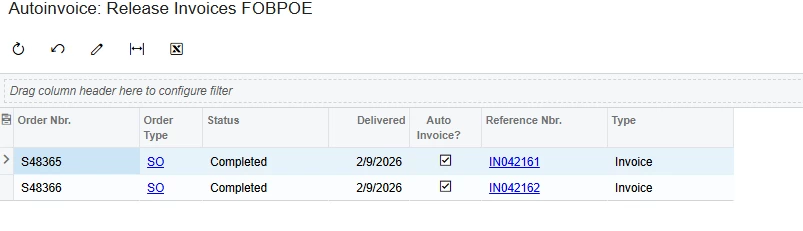 This then activates a 2nd GI, who then creates invoices off those Shipments via import scenario.