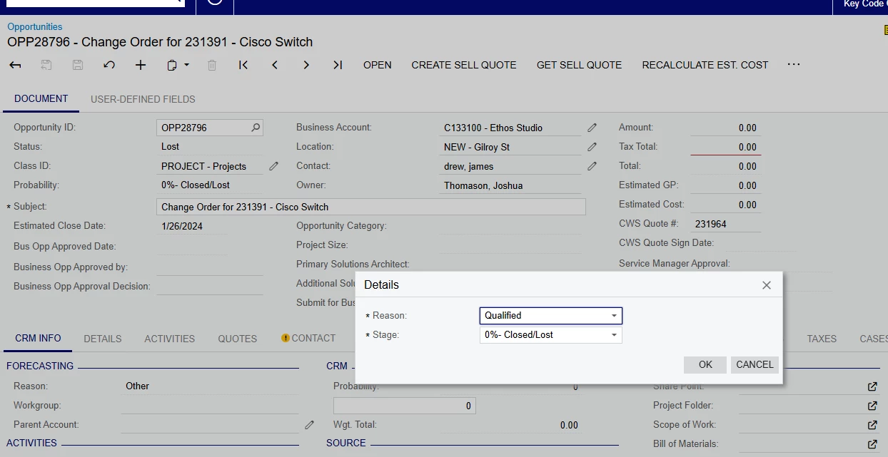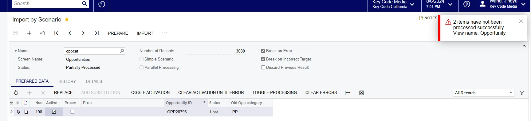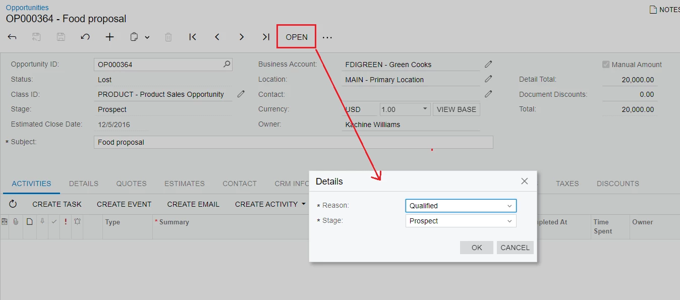 I was trying to reopen the lost Opportunity from Import Scenario, But I faced the error below.