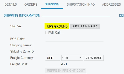 However, on the SHIPPING tab the Ship Via has been incorrectly changed to ‘UPS GROUND’: