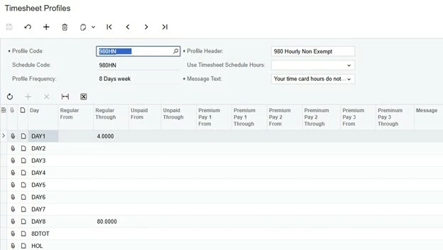 Hi — we’re exploring a 9/80 schedule (every other Friday off) and want to use the “split Friday” approach so each workweek still totals 40 hours. JAMIS Prime runs on Acumatica, and I can’t find a public example of JAMIS clients doing this. Has anyone here implemented 9/80 in JAMIS Prime (which screens they used, e.g., Timesheet Schedule / Time Card Profile / Overtime Rule), or can share a short description of how you configured it? Thank you!