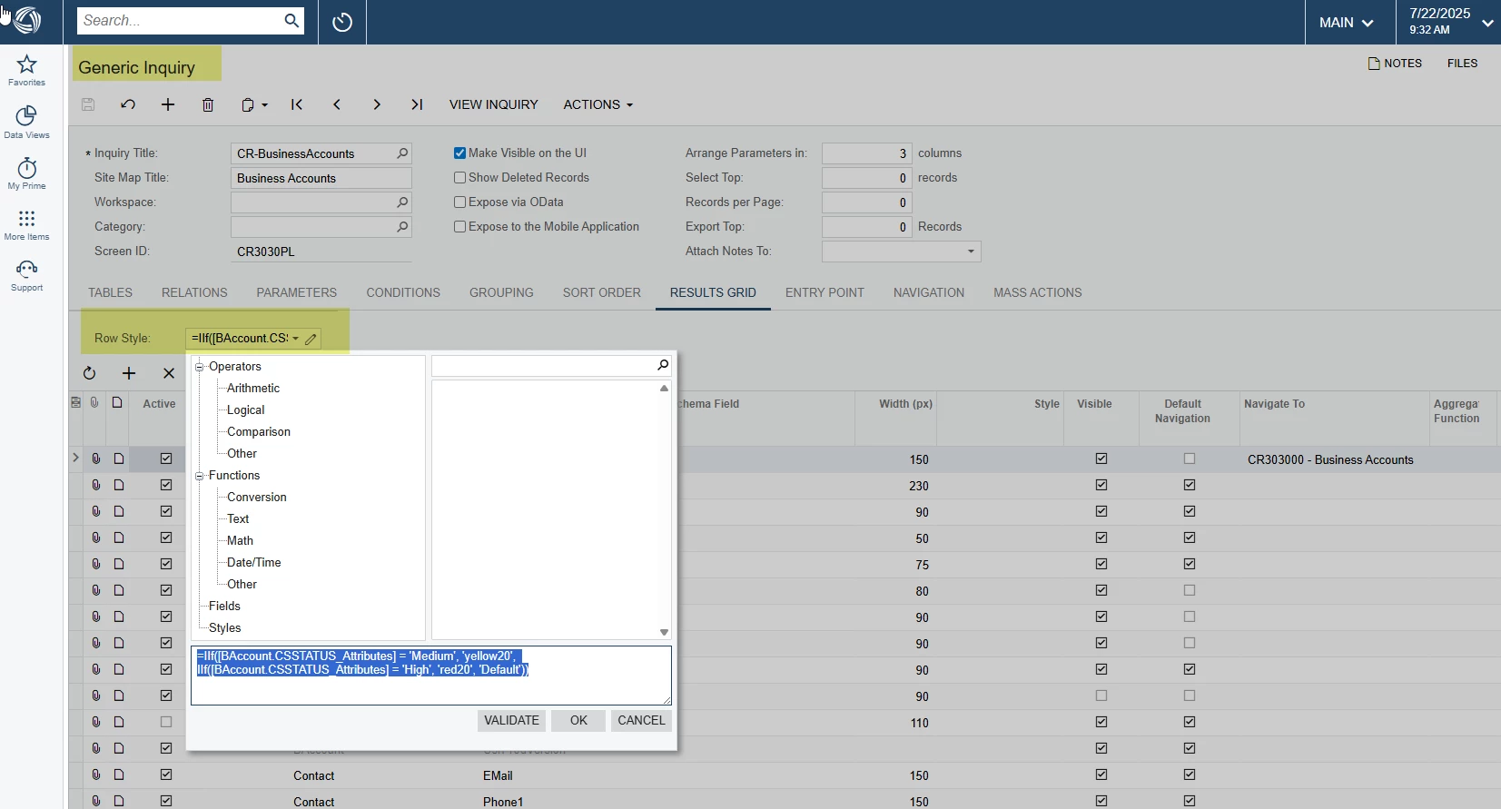 Validate and Save: Click "Validate" to check the syntax of your formula. If valid, save the Generic Inquiry.