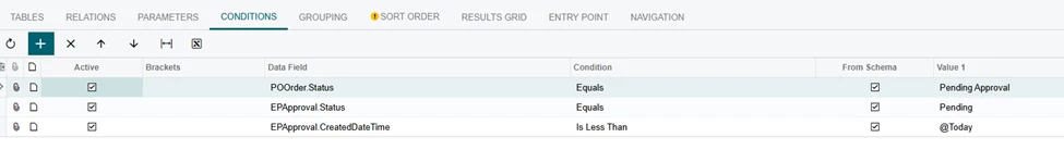 Creating a Business Event for Late Approval Reminders starts with a Generic Inquiry first. In the example below I have a GI made for Late Purchase Order Approval reminders.