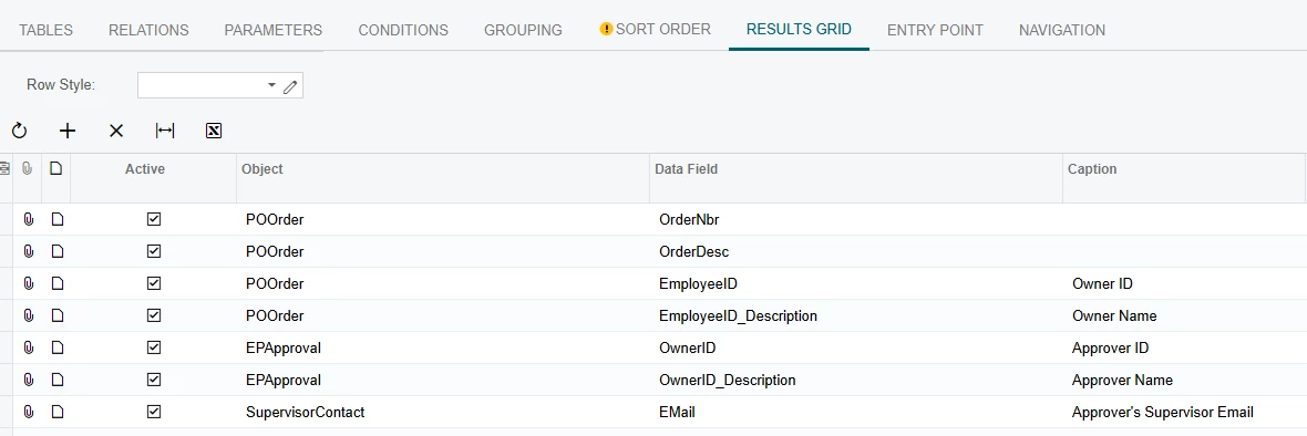 In the results grid, the following fields were added: