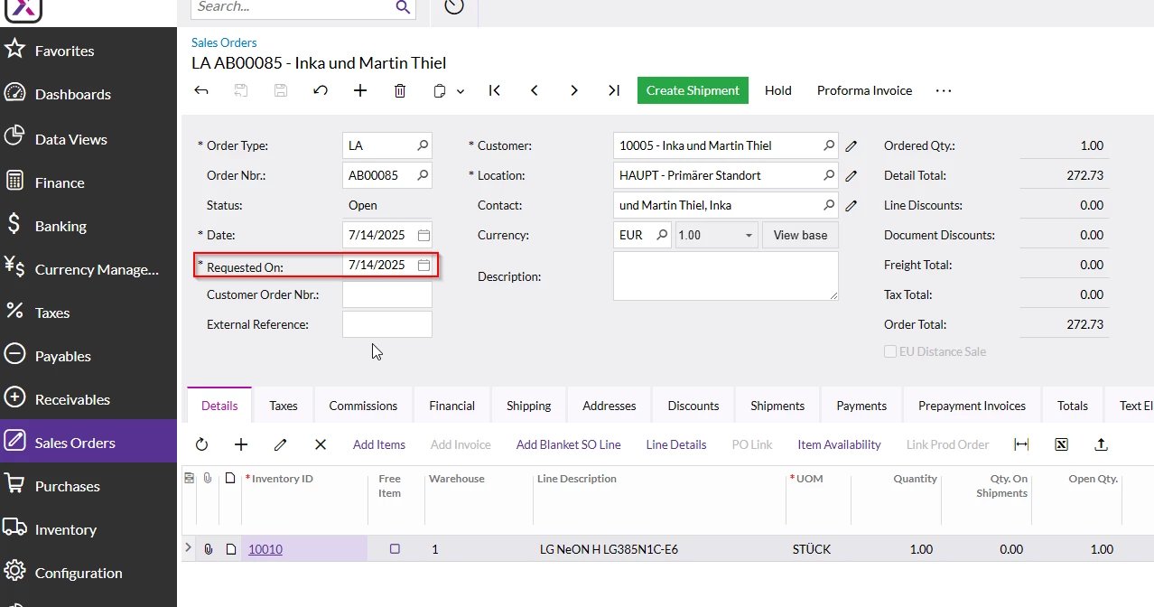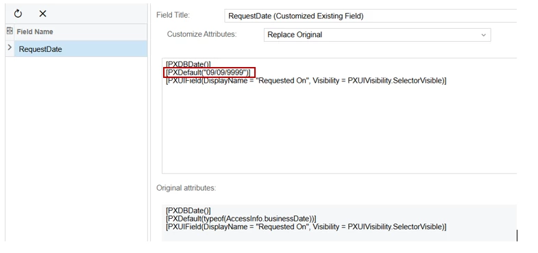im trying to achieve to set an standard value for the date field "requested on" in the sales orders. I executed it as follows: