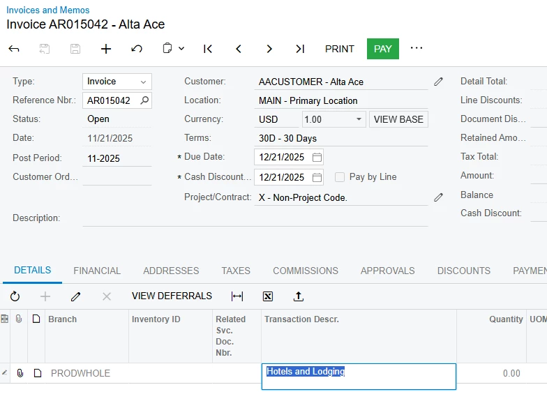 Is it possible to change the Transaction Description (ARTran.TranDesc) for the invoices created when using Credit Terms with the Multiple Installment Type?