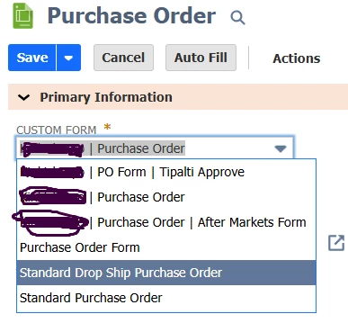 In NetSuite, we have the ability to create and manage multiple custom forms for the same transaction type. For example, with Purchase Orders: