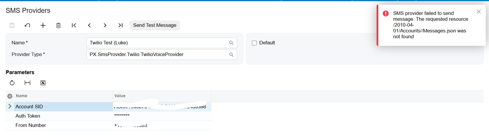 Hi, I am trying to set up Twilio, but I am getting an error message when I try to send the SMS from the system, I got a trial account and number from Twilio for my tests but somehow it isn’t working, Could I have missed something?