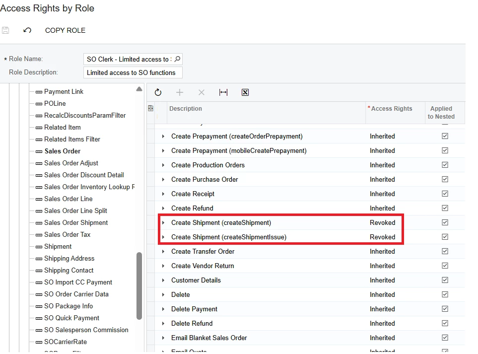 Hello experts, i have created access right by role for sales user and have restricted user to create shipment but when i am creating sales order create shipment button gets enables and allow to create shipment. please check the screen shot for access right by role and please let me know what am i missing.