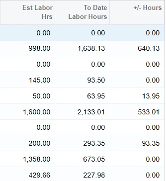 I would like my generic inquiry to include a variance column for our labor hours. The problem I am running into is that the inquiry doesn’t return a negative number when the “To Date” amount is less than the “Est Labor Hrs”. (Ex. 673.05-1,358.00 should return -684.95 so we can see the difference)
