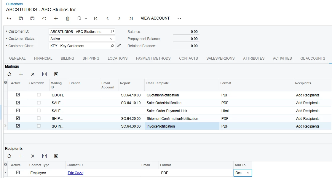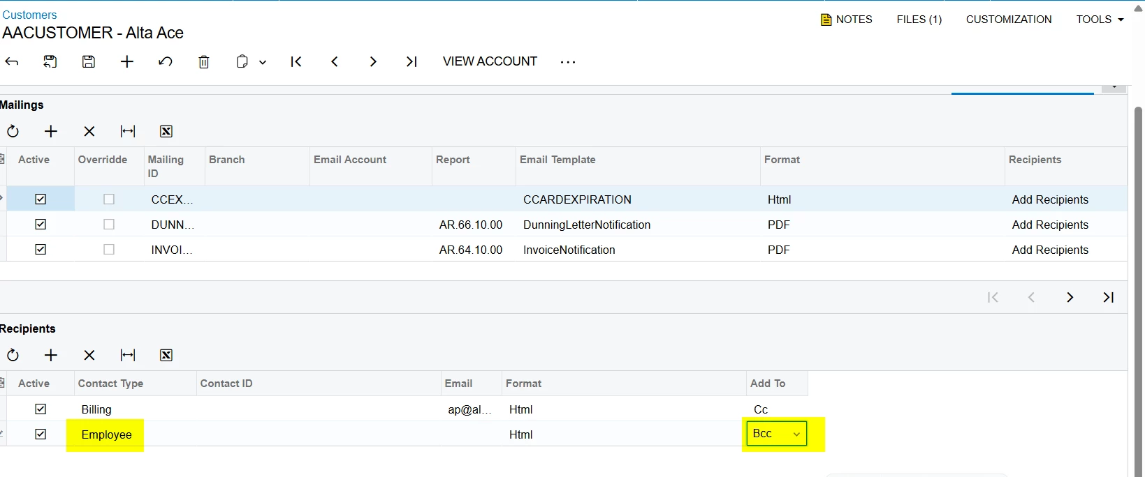 We are trying to figure out how to bcc a sales rep for the specific customer when the customer gets an invoice emailed. We’ve tried using contacts without a lot of luck and our VAR most recently recommended this. Any other thoughts / suggestions?
