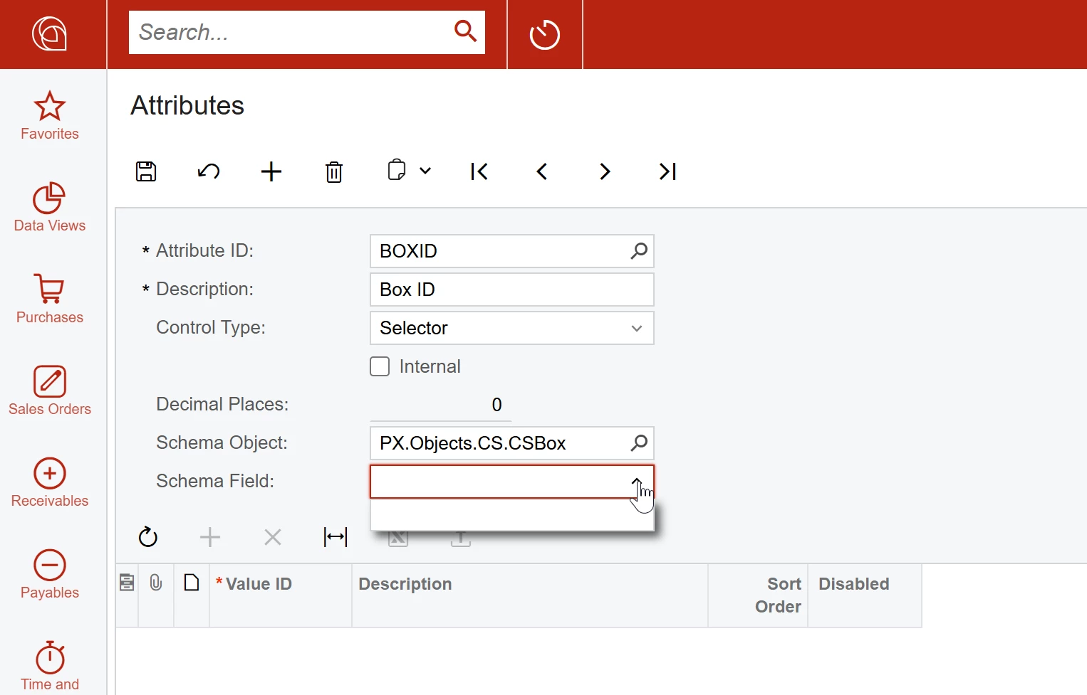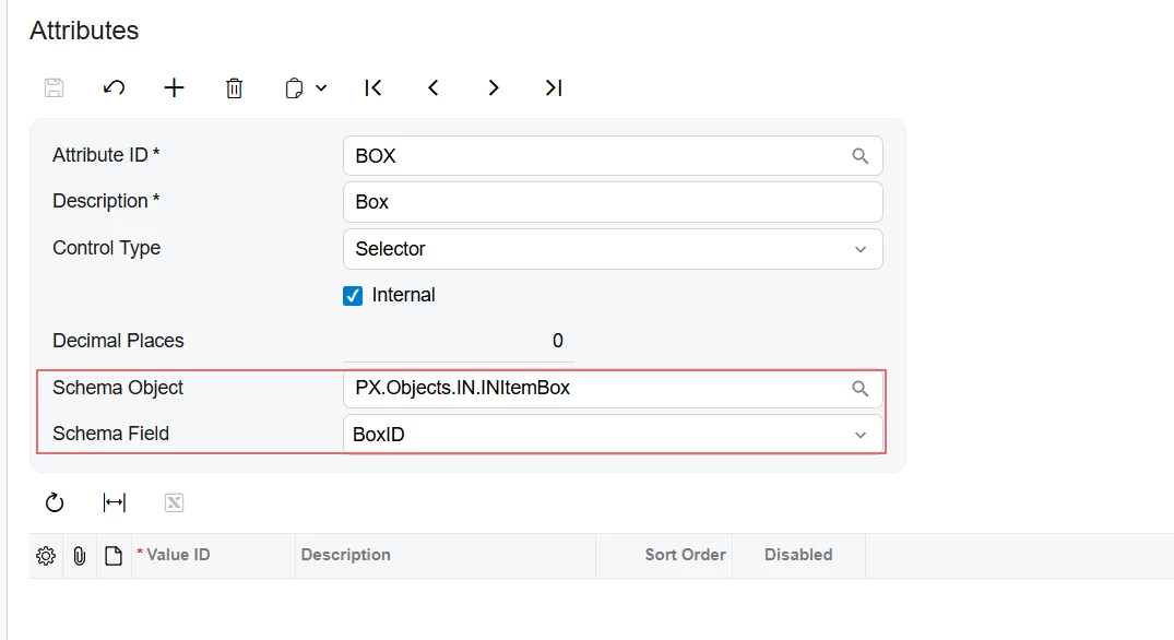 We are trying to create an attribute using the Selector control type for the BOX ID field on the Boxes screen. We know the Box ID field lives on CSBox DAC, however, when we select CSBox as a Schema Object, Box ID does not show as an available schema field to choose. We are on 25R2 and have created a selector attribute before, any thoughts on why box Id field does not show? Anything special with this DAC or field?