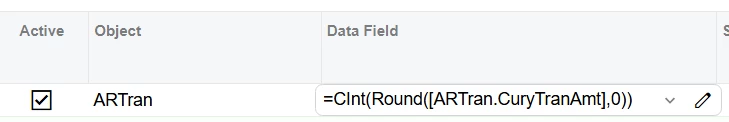 =CInt(Round([ARTran.CuryTranAmt], 0)) → 1