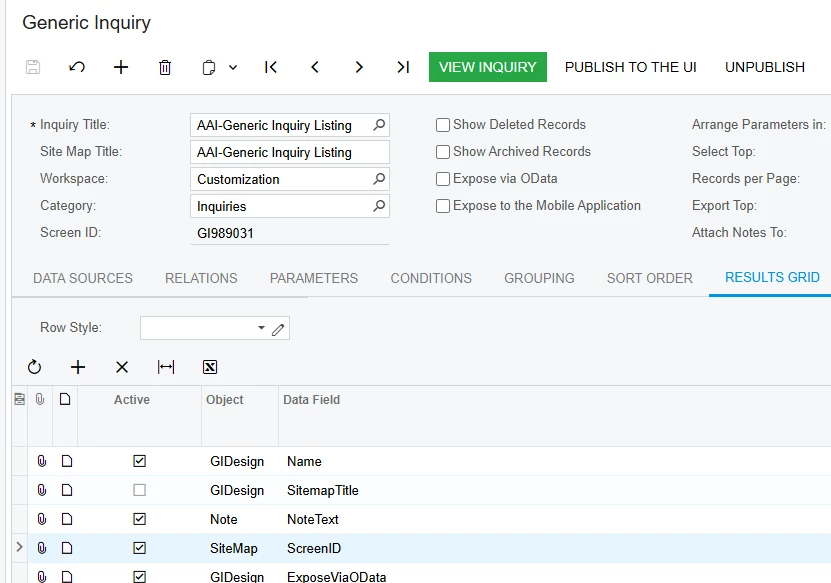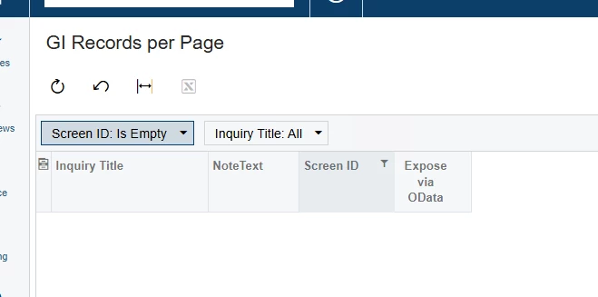 Works beautifully, except that many of the ScreenIDs are missing (in the above screen shot I’m looking for the value GI989031 or GI.98.90.31). The DAC Schema for GIDesign indicates SiteMapScreenID is nonexistent, so I linked to SiteMap. I can see the GI listed in the Site Map. But since SiteMap is related to GIDesign through PrimaryScreenID and it appears many of my GIs do not have a PrimaryScreenID, the SiteMap.ScreenID value remains blank in my results list. How do I get my GI results to show GI989031?