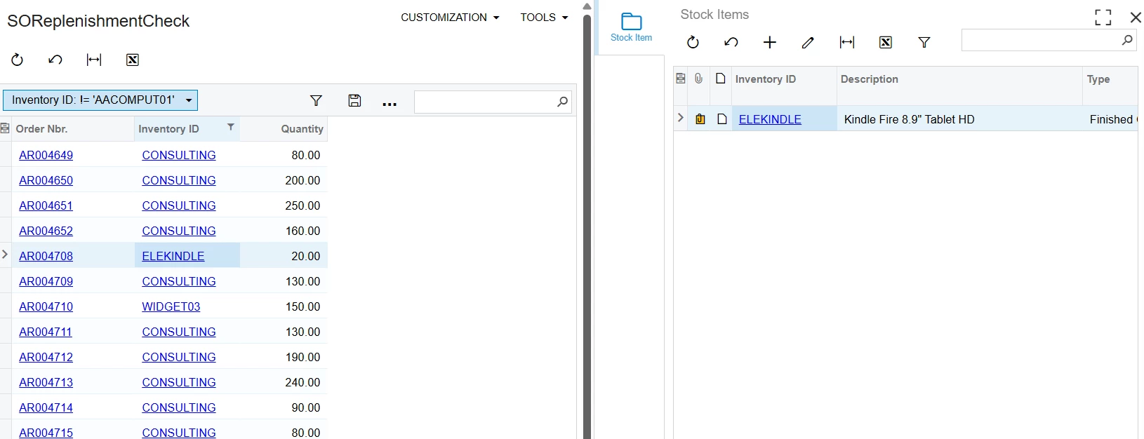 However, I’ve noticed that for some records, the Inventory ID displayed in my GI does not match the Inventory ID shown in the Side Panel GI. In other words, when I select a line, the item shown in the side panel appears to be different from the one in the main GI result.