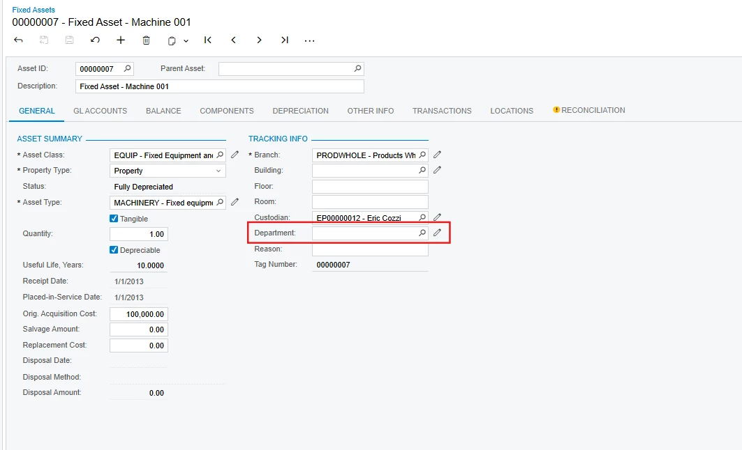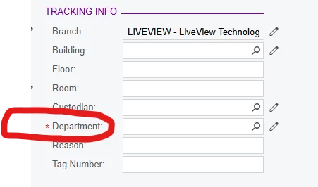 I’m working on setting up the Fixed Asset Module in Acumatica, and we are deciding on if we have value in using the Department filed. Currently it is a mandatory field: