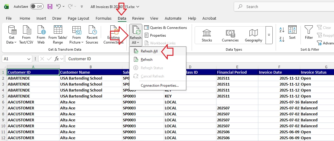 On the refreshable excel reports
