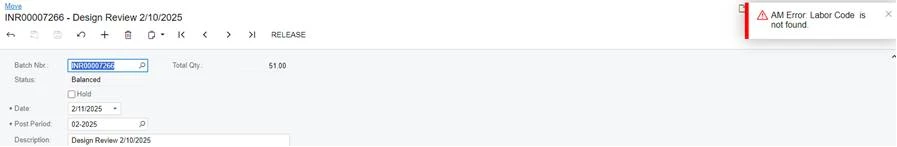 All Transactions in the Move has Labor code assigned in the Work Center . what will the reason for not allowing to release