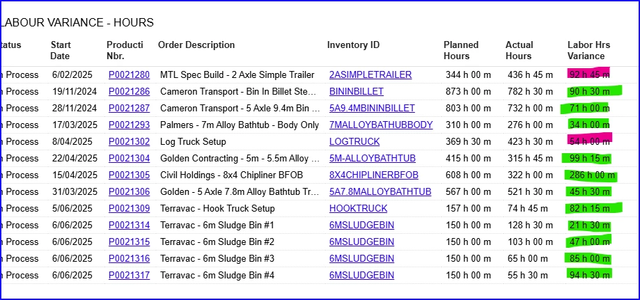 On our dashboard, we have data that shows production labour vs planned labour and a variance number - however, the number comes out as an absolute number.