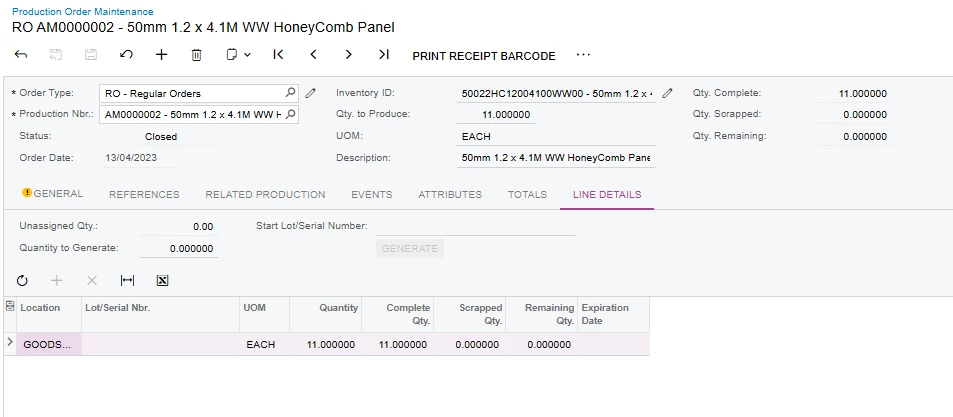 Error: Updating 'Production Item Split' record raised at least one error. Please review the errors.