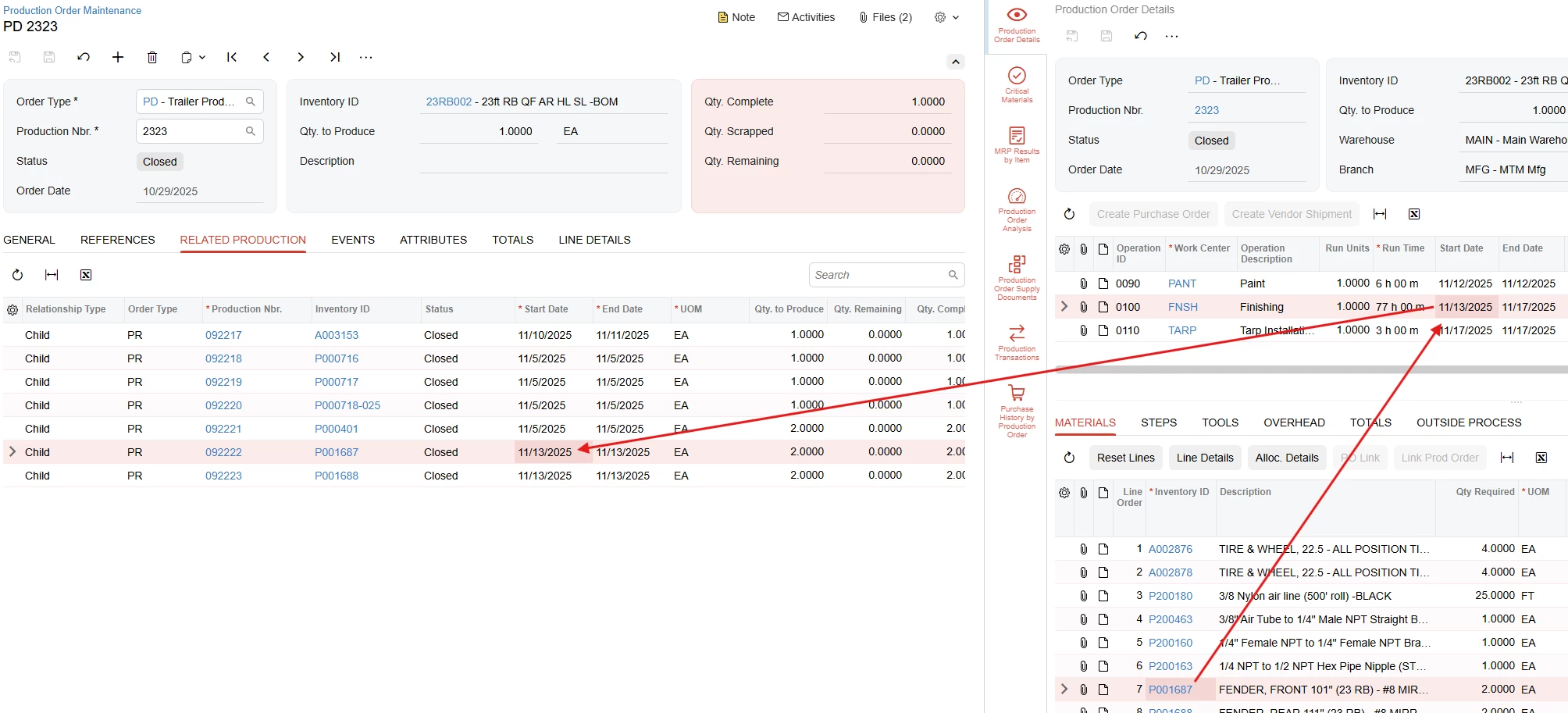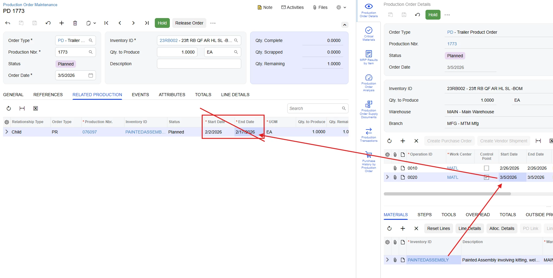 We’d like the Constraint Dates for the child orders to be pegged to the OPERATION start date, not the ORDER start date. Is there a configuration we’re missing? We do not use APS.