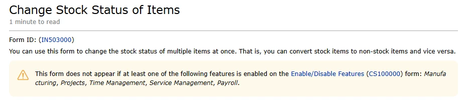 How to change a Non-Stock Item to a Stock Item