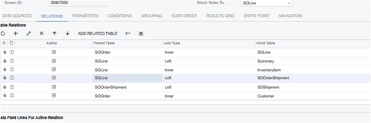 What are the relations you have added to join the SOLine and SOShipment tables?