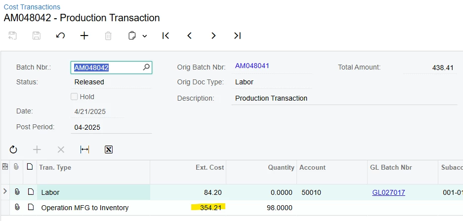 Please see below screenshot: I verified the $354.21 operation MFG to Inventory is the summary of material $270.01 and labor $84.20. but how can I see the list of $354.21, is there a way to run a list what “operation MFG to Inventory” is made of? Thanks