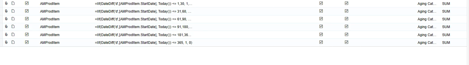 =IIf(DateDiff('d',[AMProdItem.StartDate], Today()) <= 30, '0-30 Days',