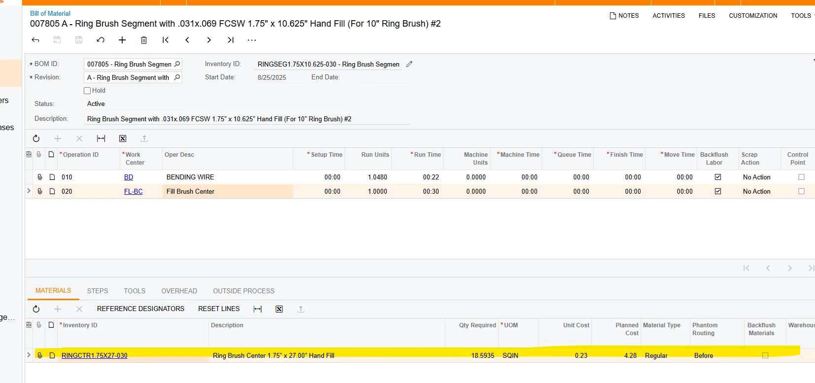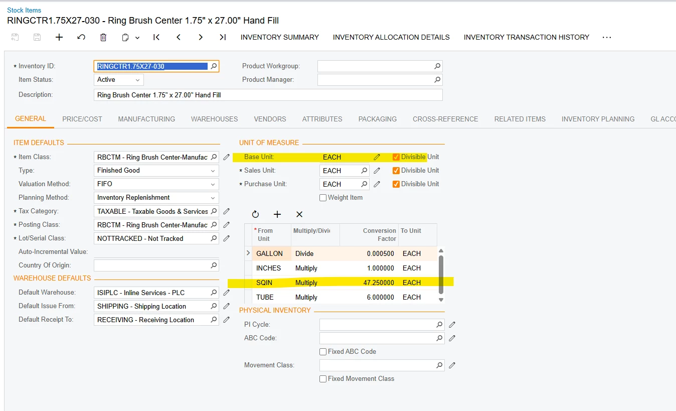 So far, we have adjusted the Stock items to correct SQIN converting amount. Did an adjustment removing the inventory for these items down zero and then did a receipt for the quantity in EACH to bring them back into inventory at the unit cost. Recreated the BOM (using the copy command) and still the unit cost is showing the EA unit cost where it should show the SQIN unit cost. The production orders material totals are eating up the inventory and out whack. We can’t change the unit cost on the production order to match the BOM (not why that is not allowed). Everything lines ups to expect the BOM/Production process is in sync.