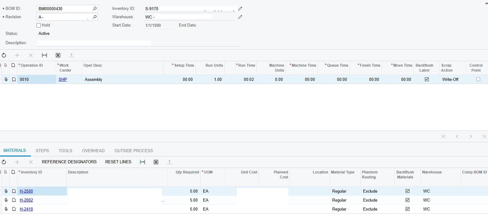 Shouldn’t it be equal the the quantity needed in the BOM times the qty of the inventory ID?