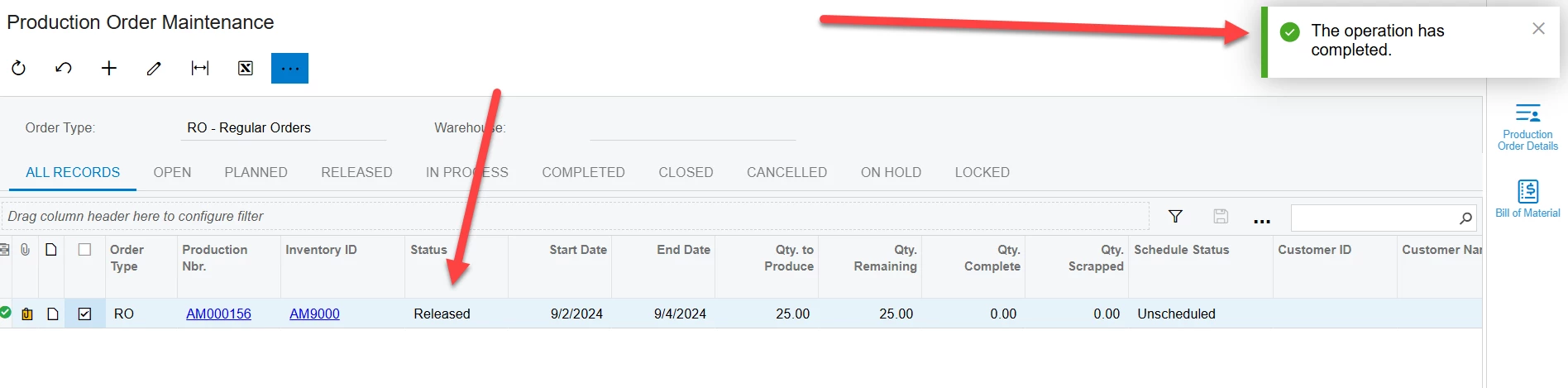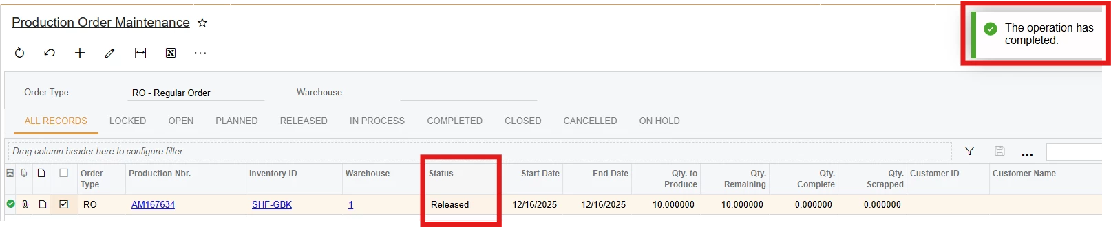 It will note the operation is complete, but the status is the same. I tried this with selecting 1 or many records and yield the same results