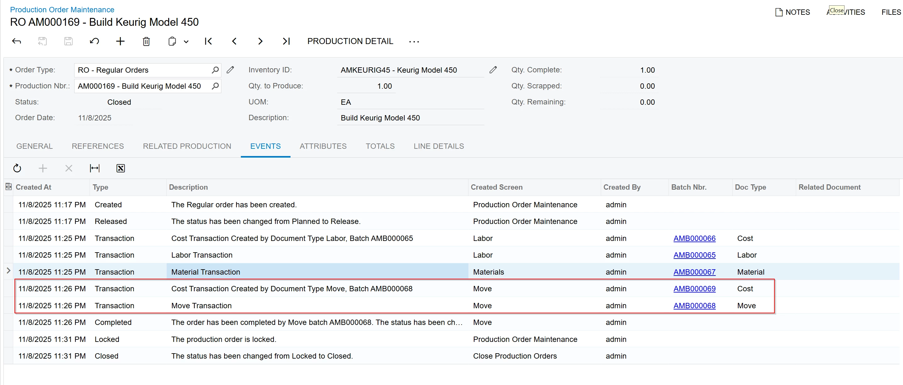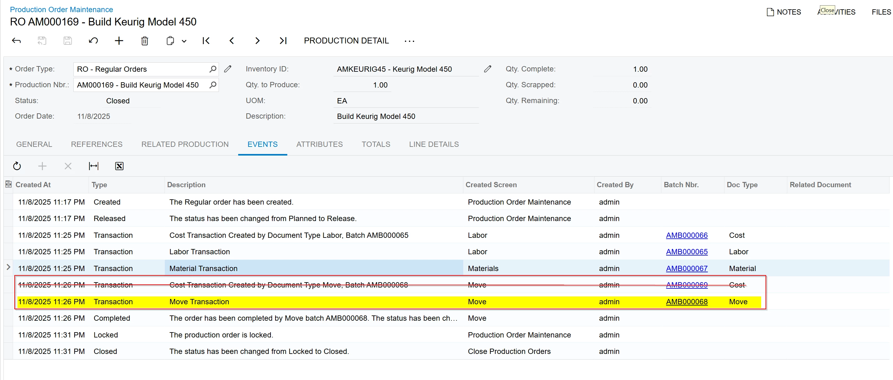 We have identified an issue where, after completing a Move transaction, the Cost Transaction is not being created for that specific Move.