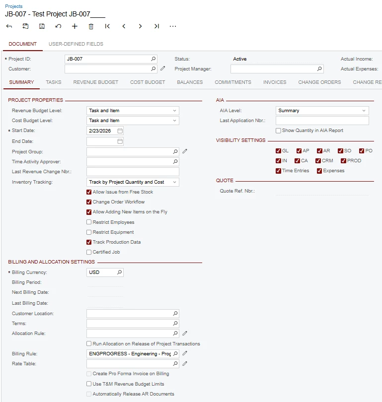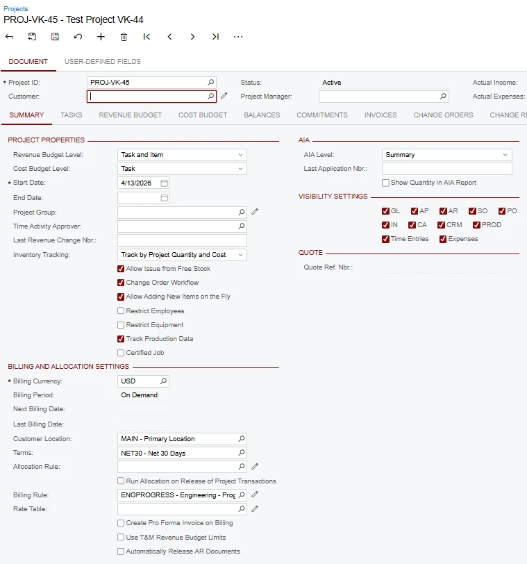 We have two separate projects, and each project has one Production order. Both production orders use the same BOM and the same material item. Both Projects are configured with inventory tracking = Track by Project quantity and cost.