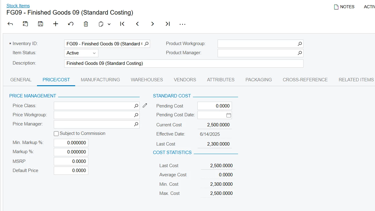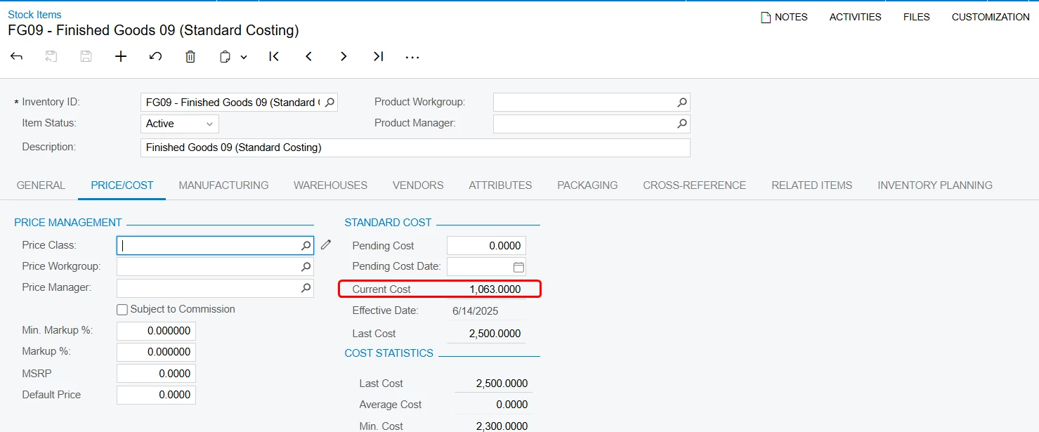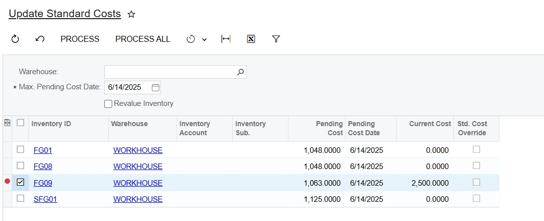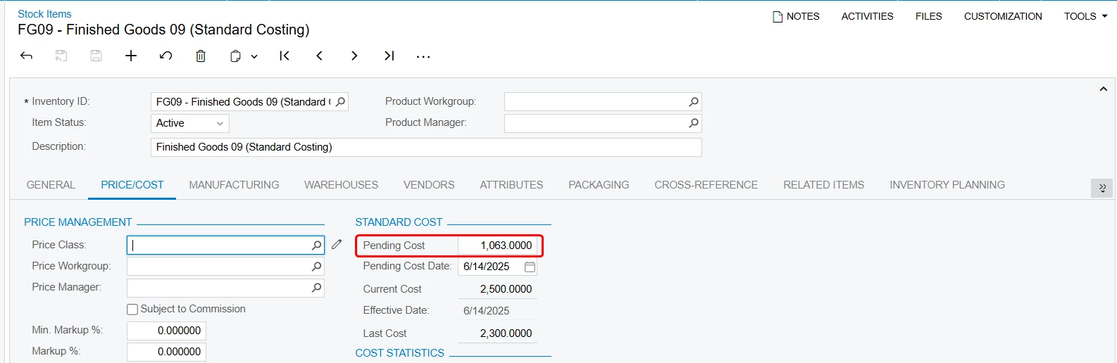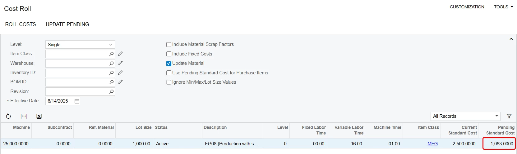 Upon running the Cost Roll. There is a value in Pending Standard Cost