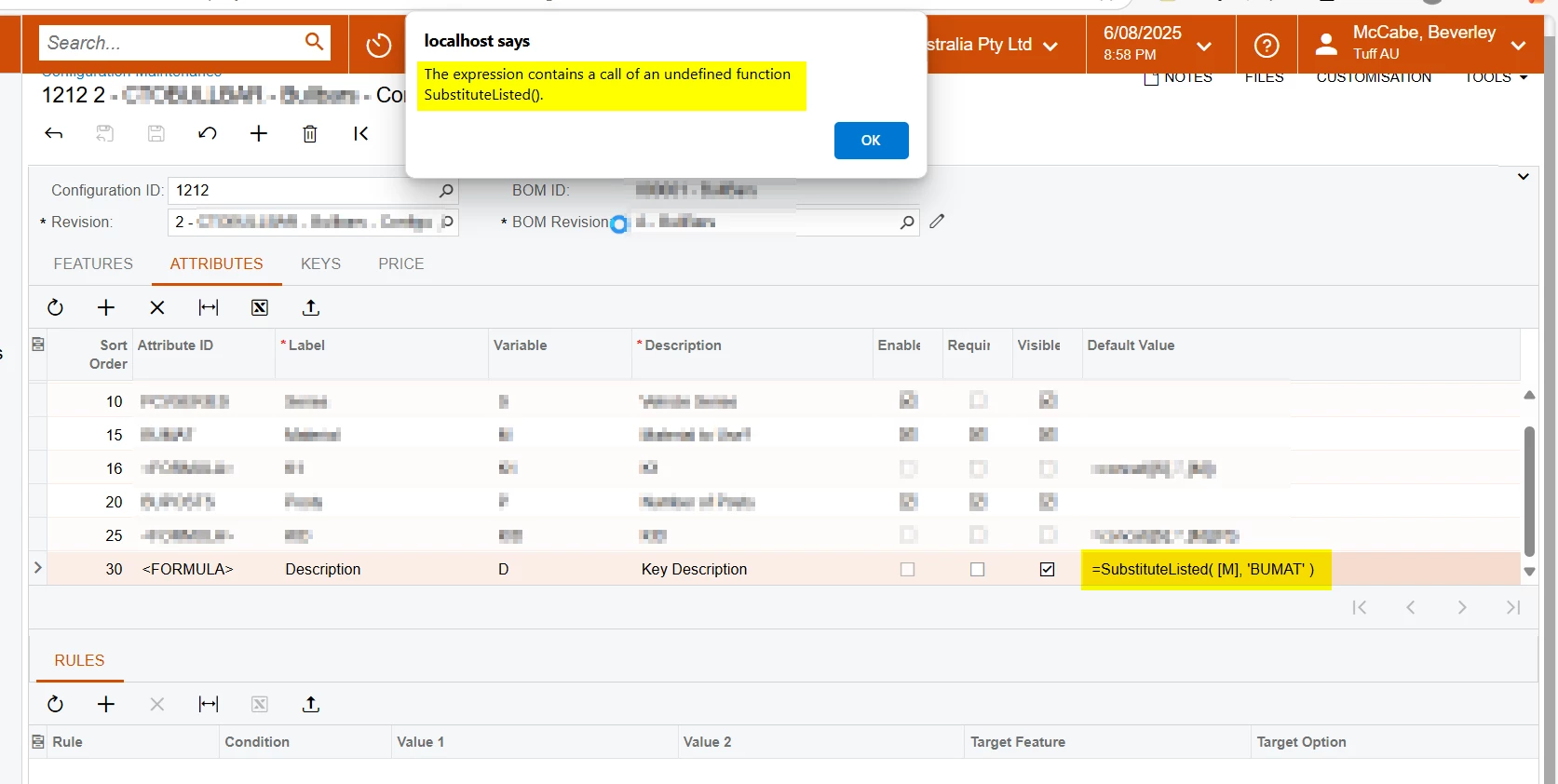 Any advice on how to build the Key descriptions easily in the configurator - all parts need to come from a variable based on selections during the process?