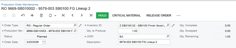1.Default Status when creating a New Production Order: when creating a new Production Order, it automatically goes to Planned Status. Is there a way to make it default to Hold status first?