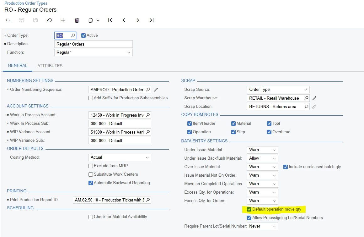 I just want to ask if there is a setup for Data Collection, specific in Scan Move Screen.