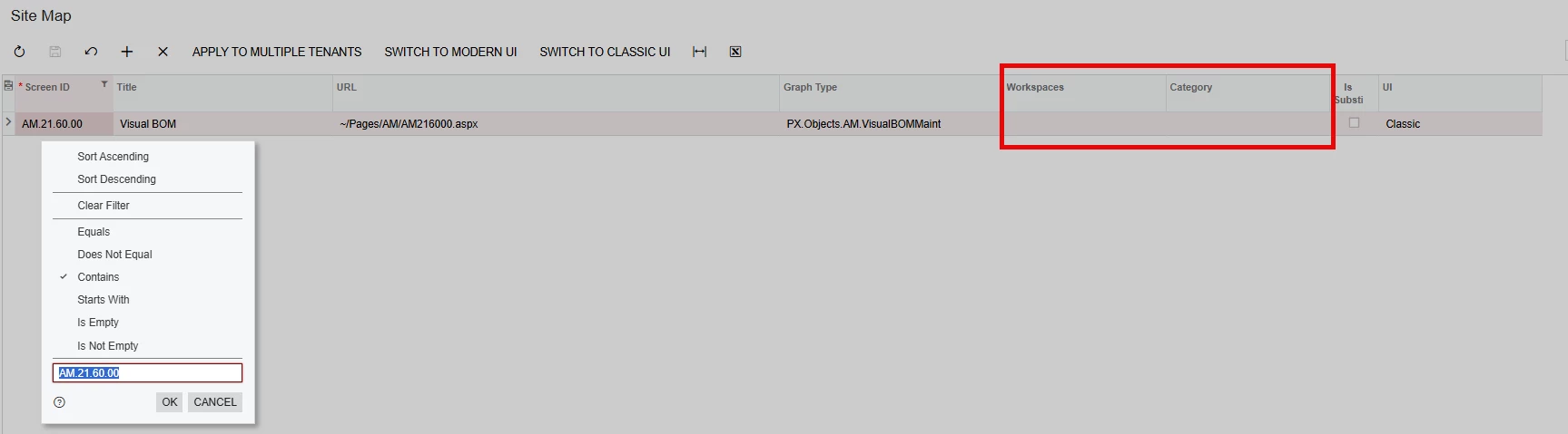 AM216000 is the screen ID, and if you search for in on the “Site Map” screen, you can should be able to select a Workspace and Category for it, which should make it visible at that location in the UI.