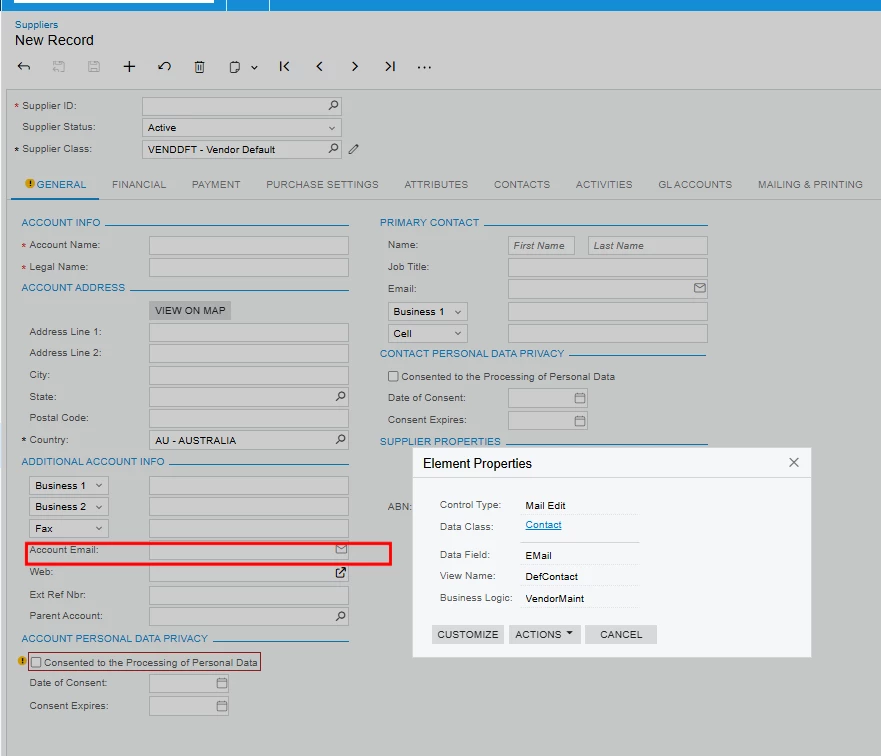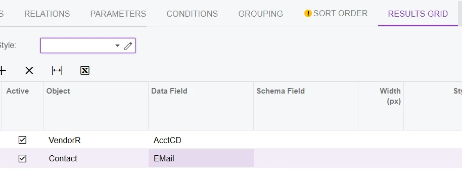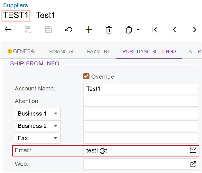 I am trying to pull the email in the tab below but i cannot get the correct result. I was able to pull the email from the general tab but not on the purchasing tab using Generic Inquiry. Any idea?