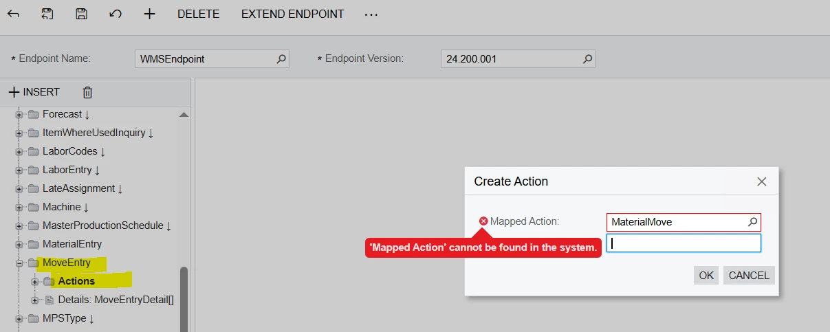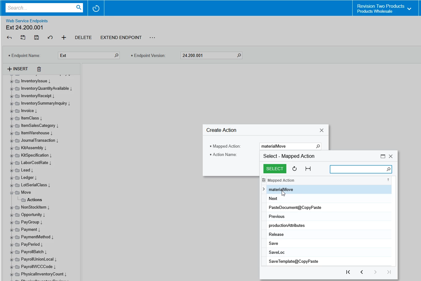 Action Showing on the screen but not able to add this in Web service Endpoint