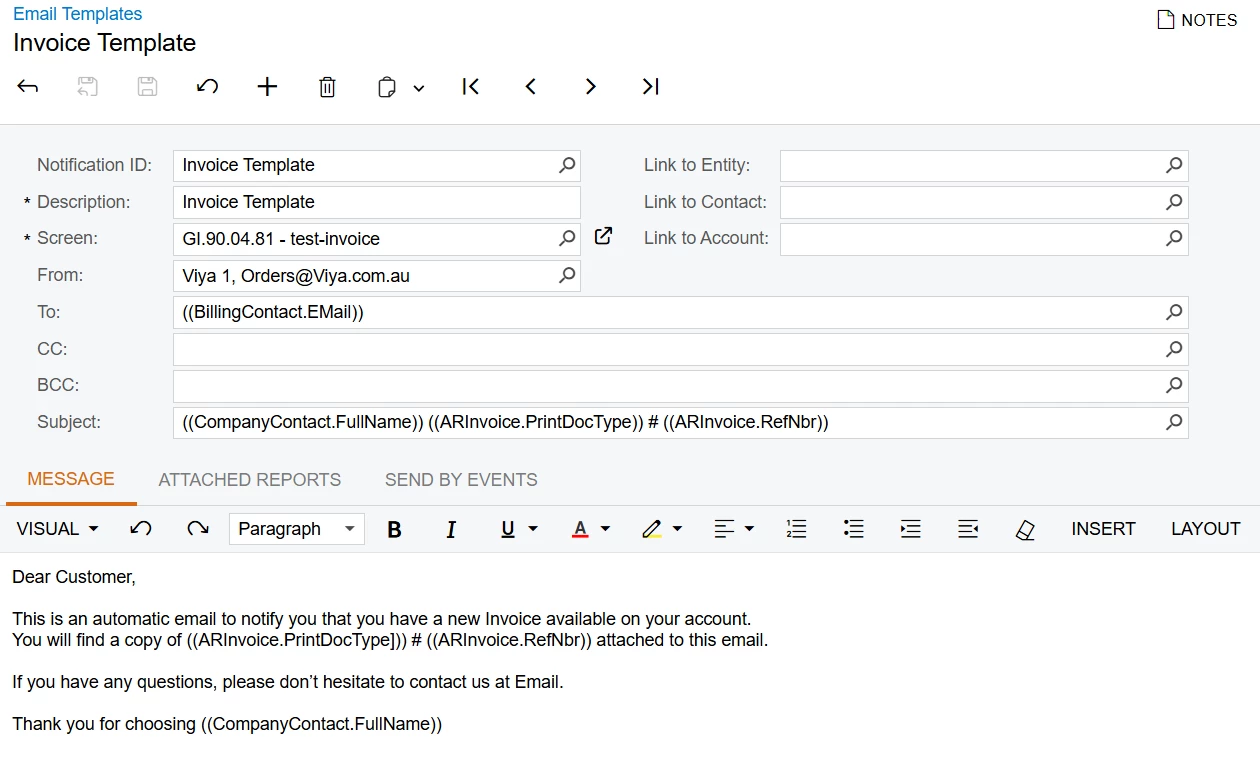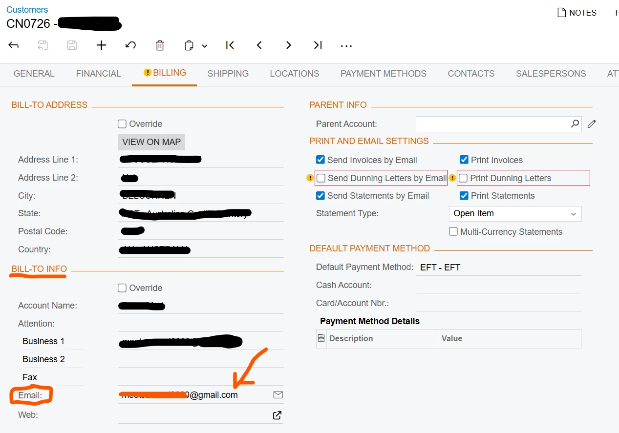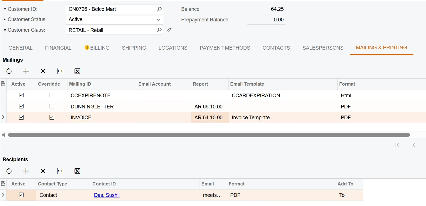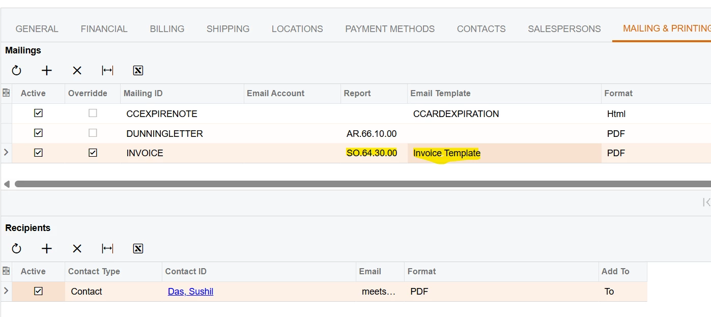 1. I have changed the Email setting for customers in the Mailing and Printing tab.