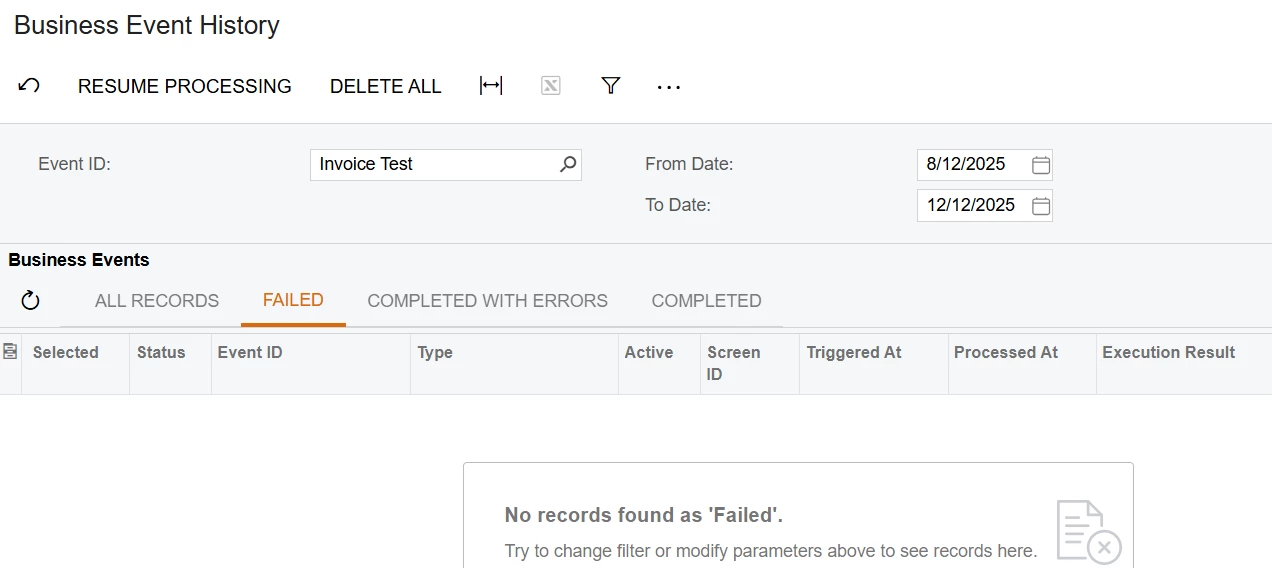 After several trial and error, the system is still not working. In conlusion, the business event is not firing. What could be the possible reasons for the business event not firing?