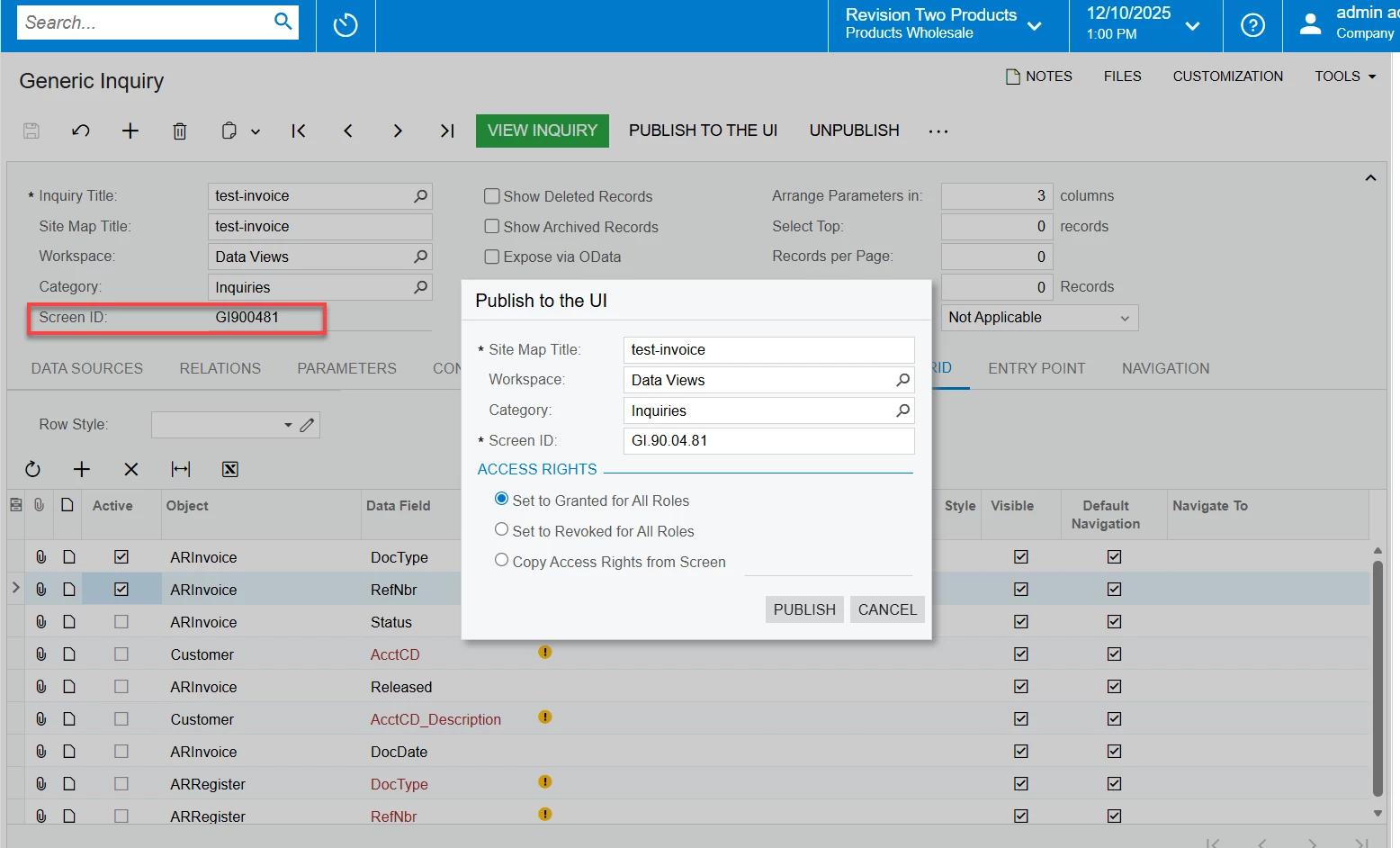 3. Created a new GI which joins the ARInvoice and Customers table to store the required information.