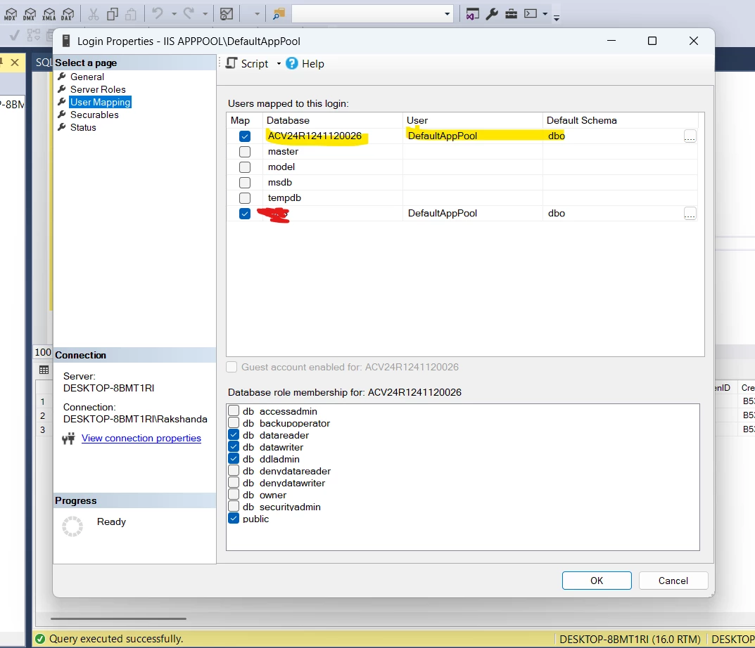 We need to map created db with SQL database ,