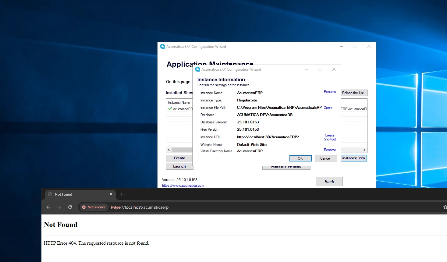 I’ve installed Acumatica multiple times, but I’m still encountering an HTTP 404 error when trying to access my local instance. Could someone please advise on how I can resolve this issue?