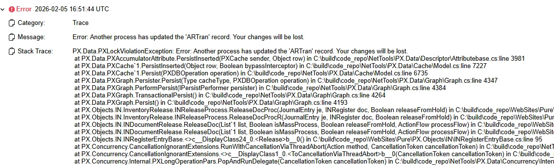 When I try to release an issue (IN302000), I get PXLockViolationException error: