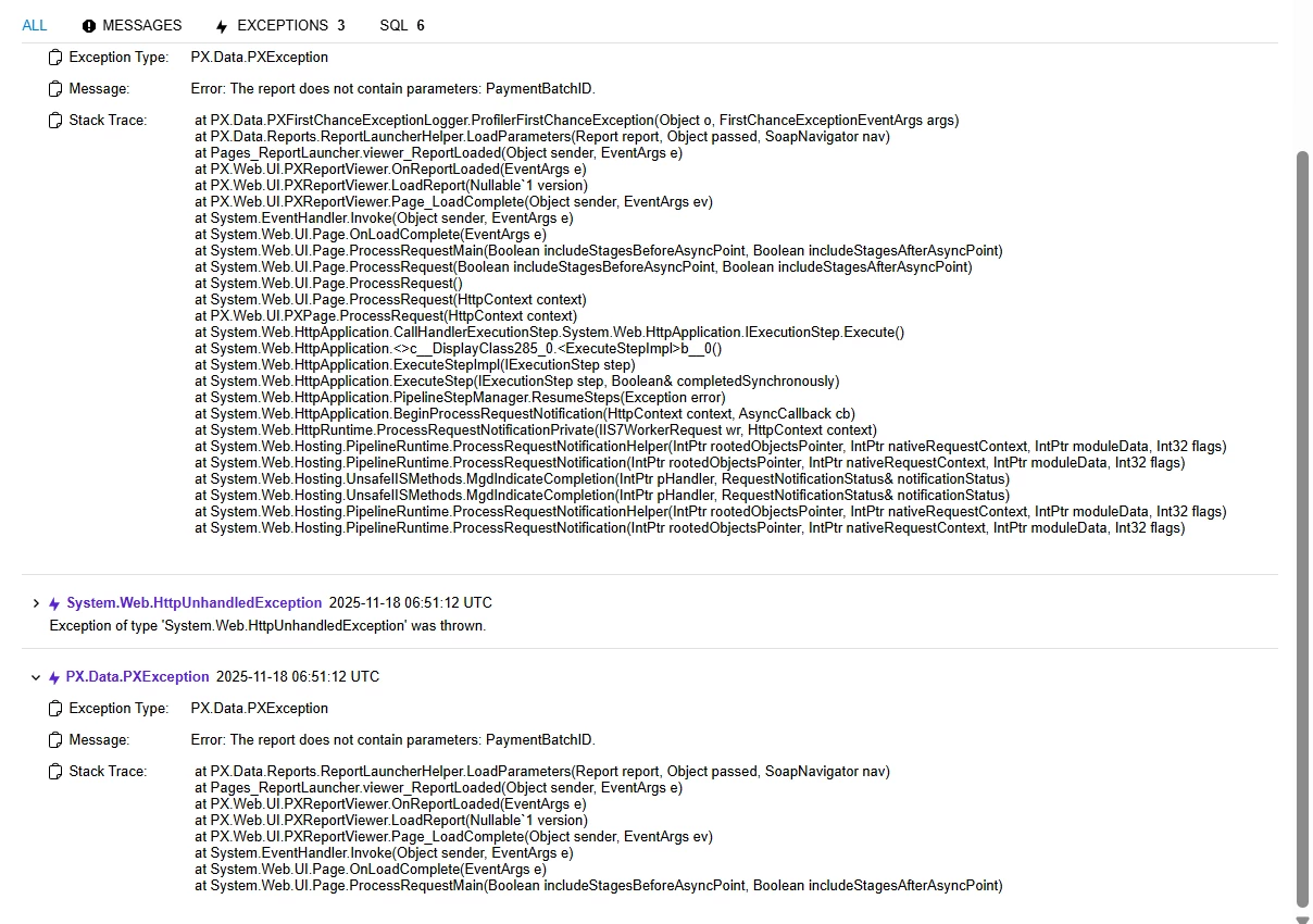 I verified the same report (PR641010.rpx) in Acumatica version (24.105.0036) — it works without any errors and the report definitions are identical.
